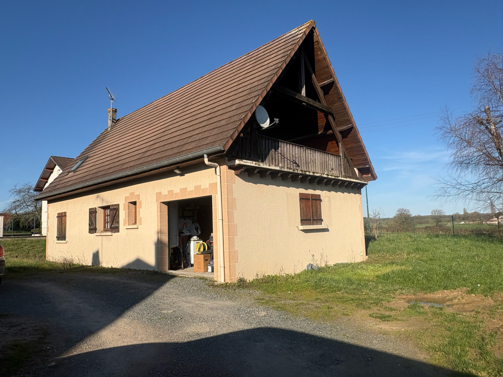 Un garage attenant d’environ 25 m² complète ce bien, offrant un espace de stationnement ou de rangement.