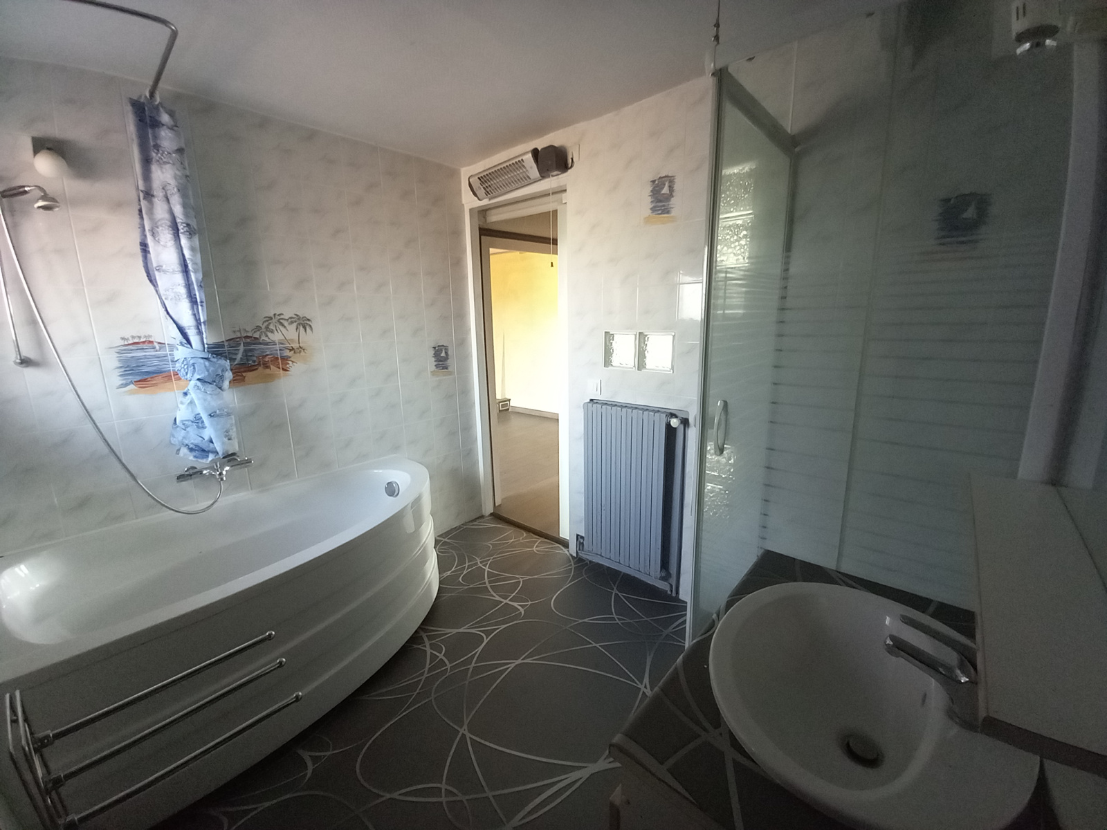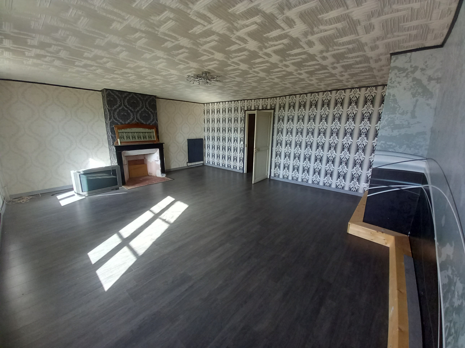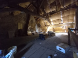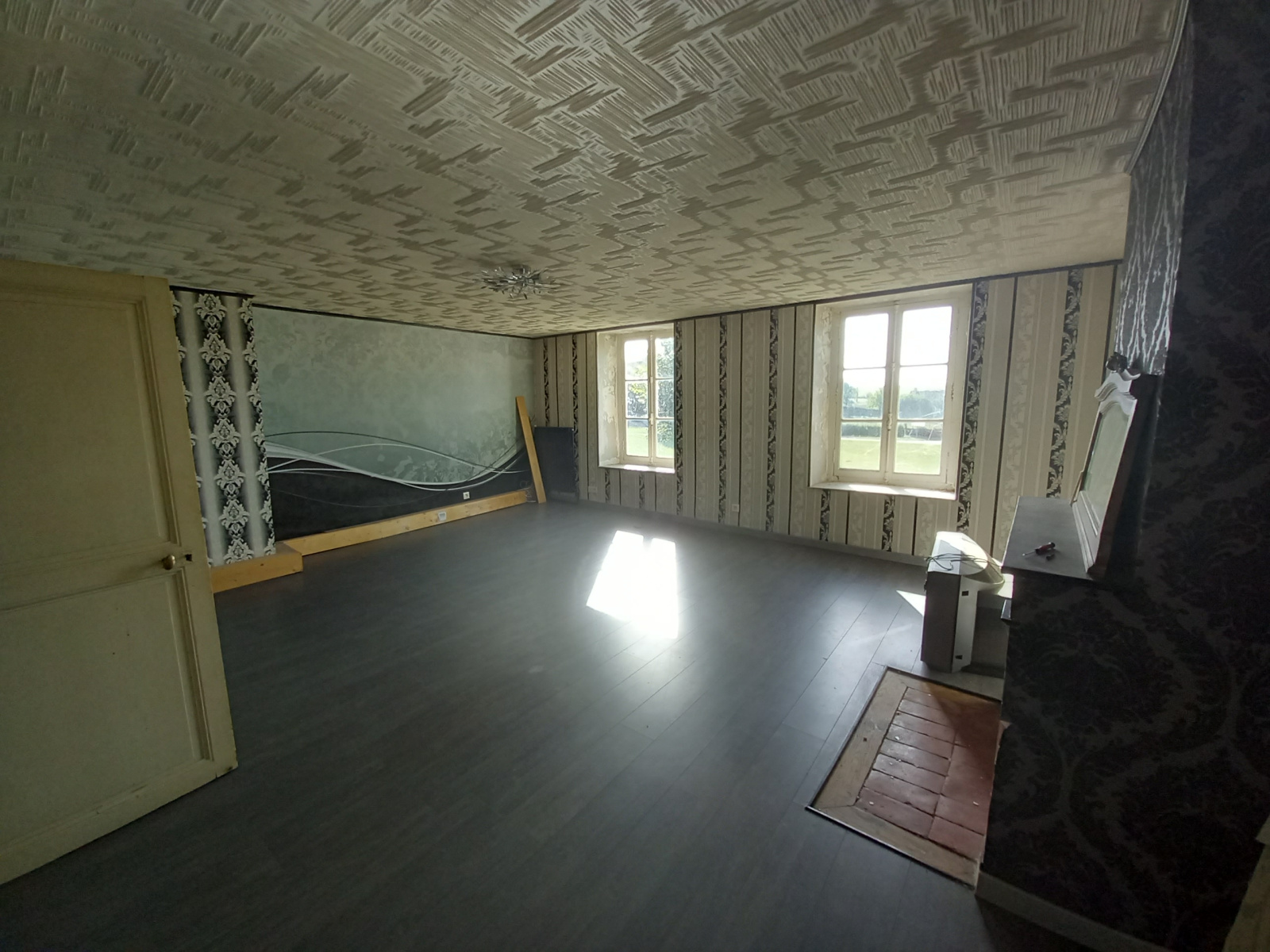 A l'étage le palier distribue deux chambres dont une de 33 m² environ qui peut être cloisonnée pour une troisième, la salle de bains avec baignoire, douche et wc et l'accès au grenier aménageable d'une surface d'environ 60 m² encore à exploiter.