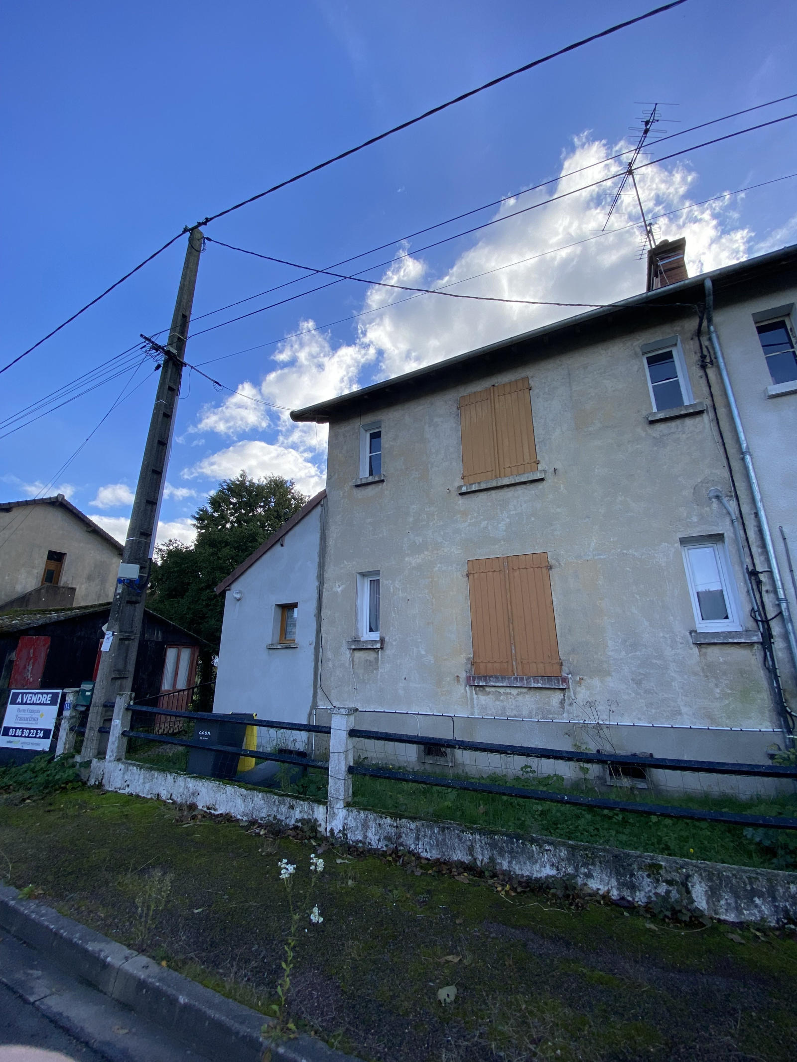L’habitation donne accès à un espace de stockage en sous-sol, une cave, ainsi qu’à un terrain (indivis) de 630 m².