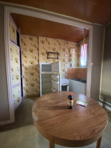 Appartement au rez-de-chaussée composé d’un espace cuisine, d’une salle de bain et de deux chambres.