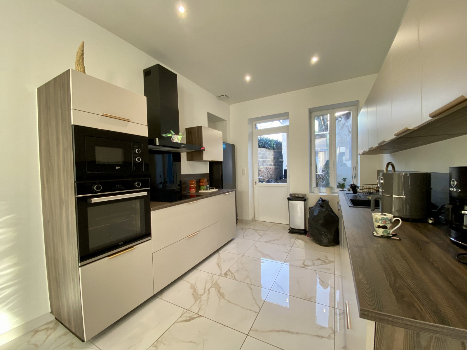 Une véritable pépite chez PIERRE FRANCOIS TRANSACTION Venez découvrir cette superbe maison de ville entièrement rénovée à neuf, offrant un style moderne et des prestations de qualité. Rez de chaussée : Grande pièce de vie lumineuse avec cuisine ouverte équipée, donnant accés à une cours, WC indépendant A l'étage : 4 chambres spacieuse Dressing fonctionel Salle de bain moderne donnant accés au comble Comble aménageable sur toute la surface de la maison. À l’extérieur, profitez d’une cour privative avec accès véhicule par un porche,dépendances et d’un terrain d’environ 444 m². Atouts suplémentaires : Maison entièrement rénovée avec des finitions de qualité Matériaux moderne et de qualité Grands espaces et luminosité Idéalement située, cette maison est parfaite pour une famille à la recherche de confort et de modernité. Contactez-nous pour plus d'informations ou pour organiser une visite et laissez-vous séduire par le potentiel de cette maison !