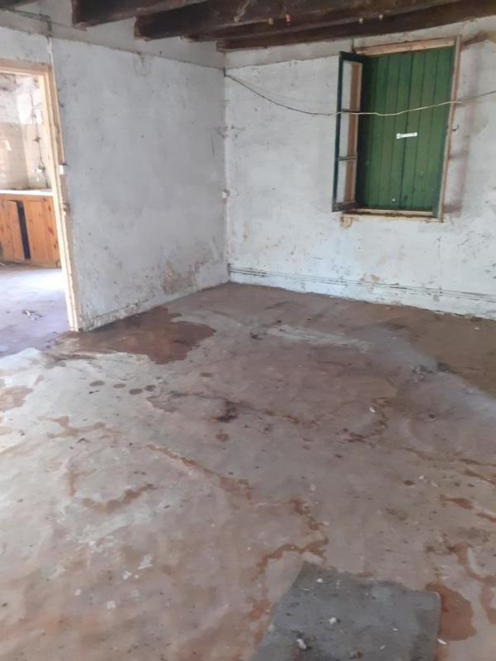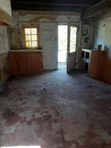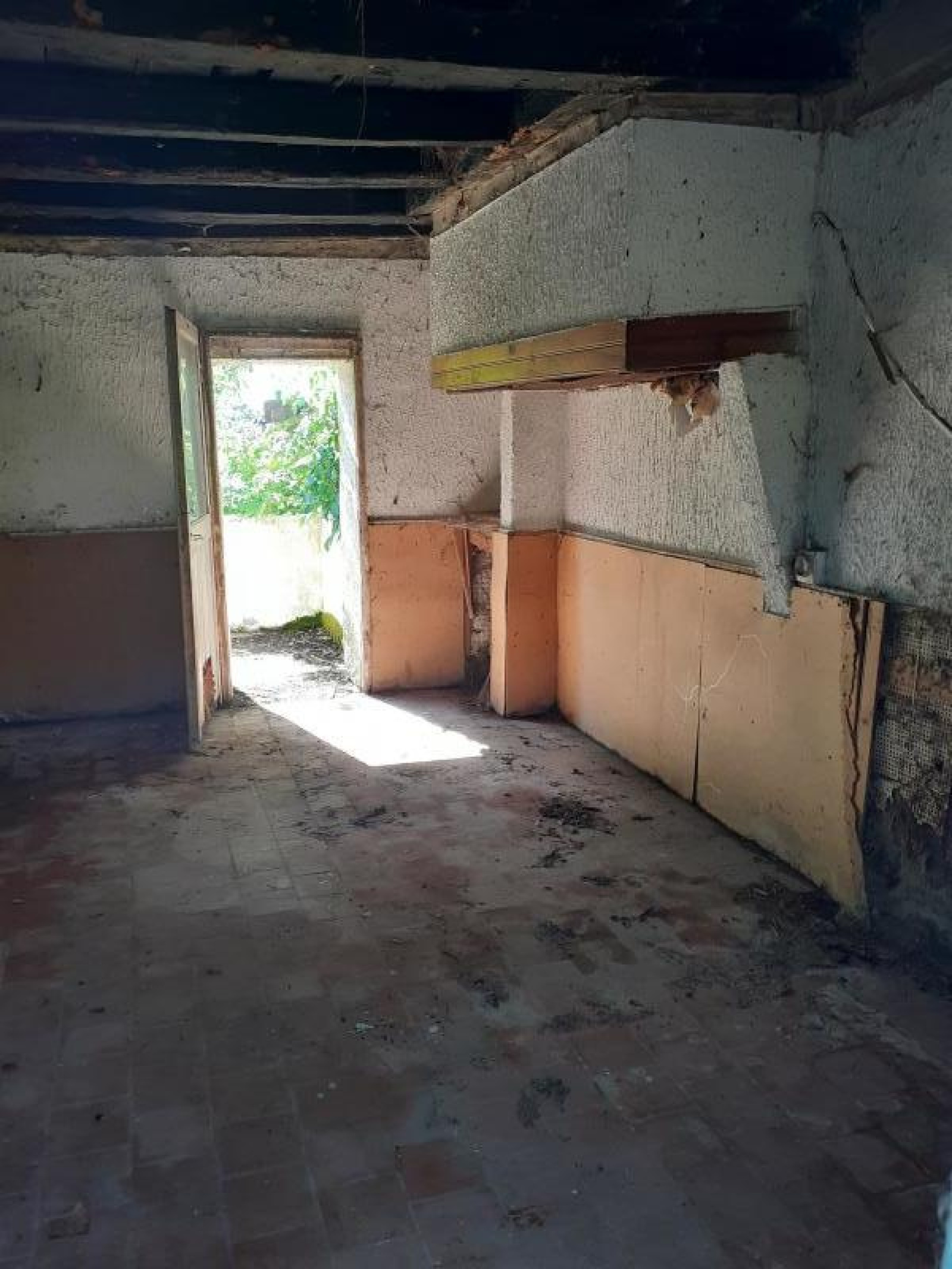 Longère à restaurer comprenant : cuisine, trois pièces, une salle d’eau avec WC, un jardin et des dépendances.