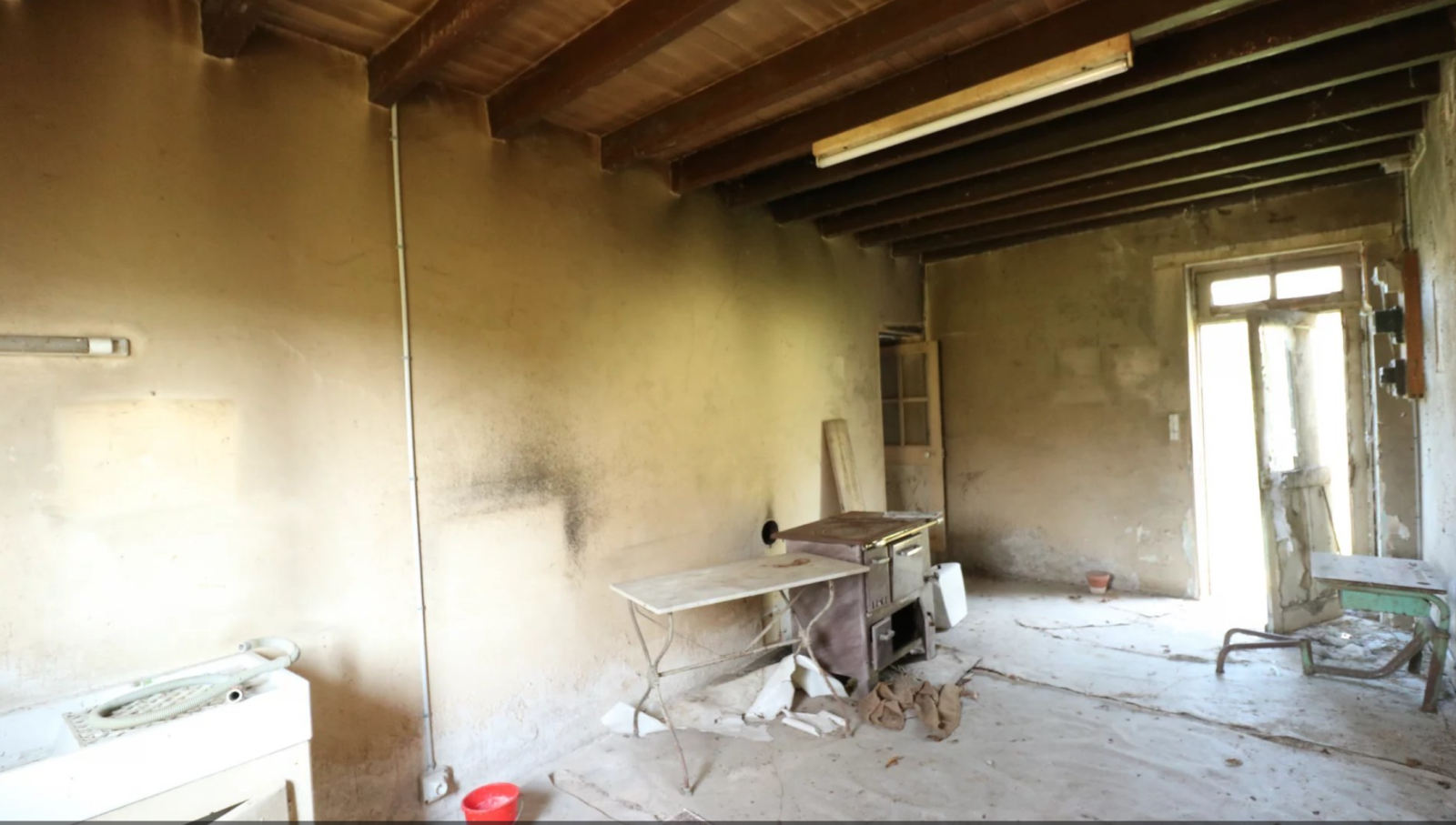 Les bâtiments, d’une longueur de plus de 35 mètres, abritent une habitation principale d’environ 120 m² avec renovation à prévoir, comprenant :
