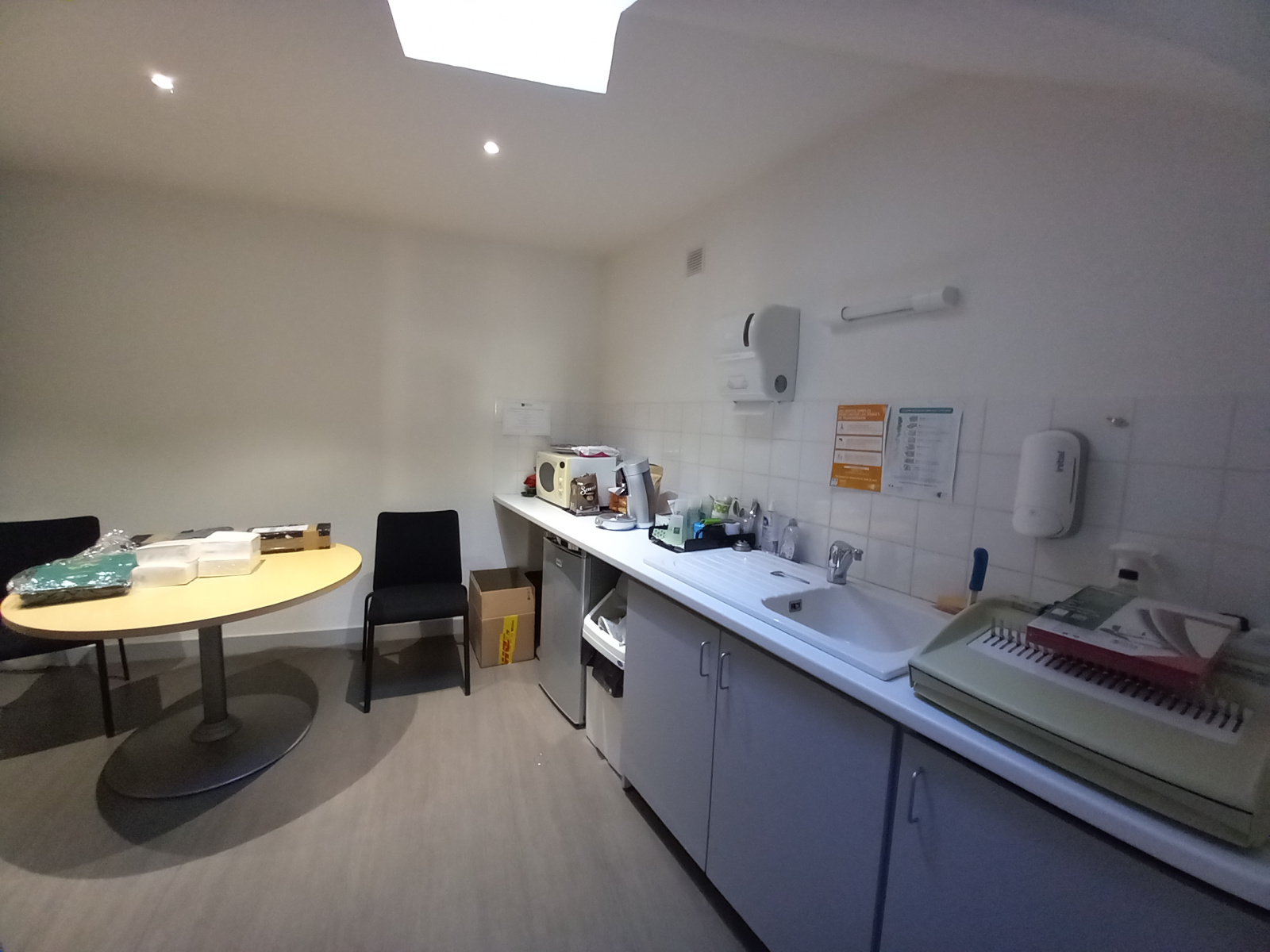 Au rez-de chaussée: un local commercial avec Hall d'entrée, trois bureaux, une pièce, local technique, cuisine, wc séparé et lave mains.